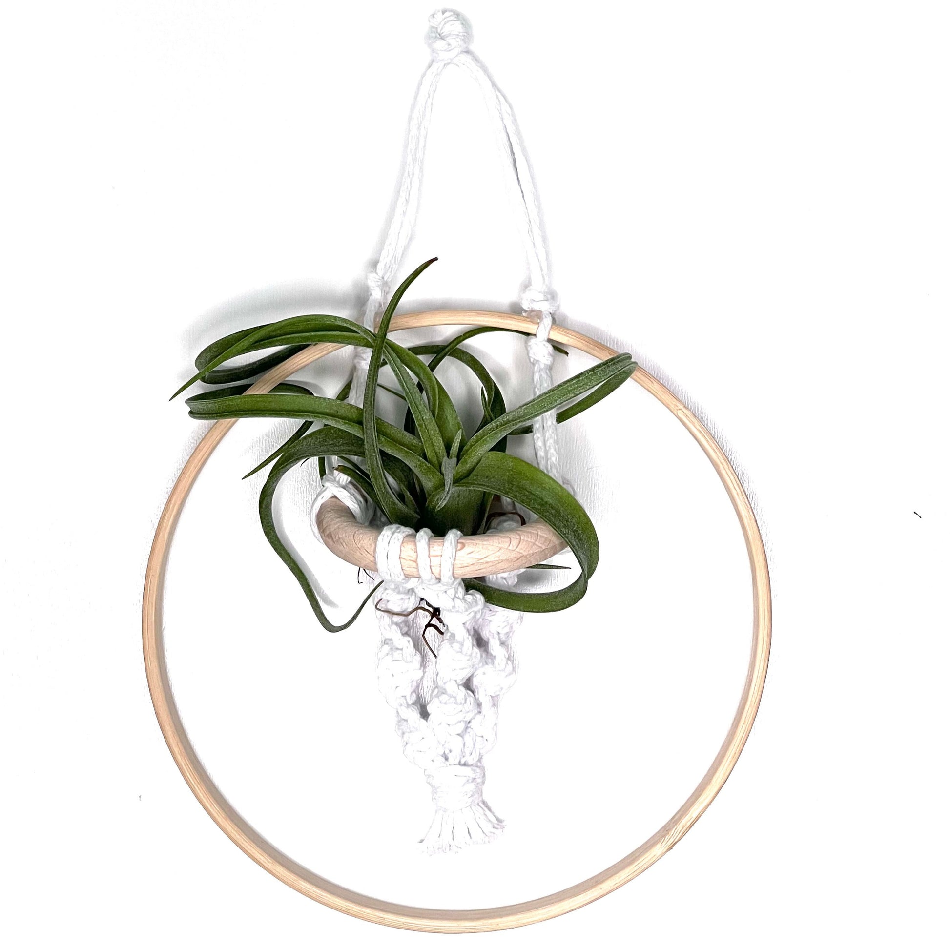Suport elegant din macrame, realizat manual pe un cerc din lemn, perfect pentru a-ți expune planta preferată. Prețul include planta și suportul, gata să înfrumusețeze orice colț al casei tale.